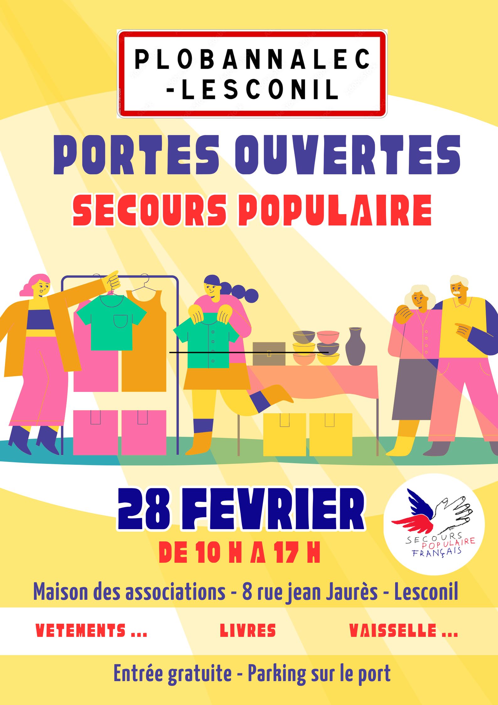 Solidarité Portes ouvertes du Secours Populaire Du 28/02/2026 au 28/02/2026 10H00 - 17H00 Maison des Associations de Lesconil Maison des Associations de Lesconil
